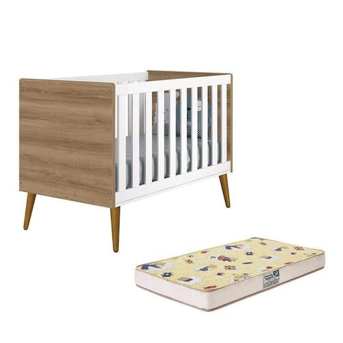 Berço Mini Cama Theo Retrô Branco Fosco/mezzo Com Pés Amadeirado E Colchão D18 - Reller Móveis Branco Fosco/mezzo Berço Mini Cama Theo Retrô com Pés Amadeirado e Colchão D18 - Reller Móveis O Berço Theo Retrô é uma inspiração de épocas clássicas, uma releitura do estilo antigo nos tempos atuais, rejuvenescendo o ambiente com cores e formas. Seus pés pontiagudos realçam ainda mais essa proposta. O Berço Theo Retrô além de muito estiloso, transforma-se em mini cama com proteção, auxiliando na transição do berço para caminha, desfrutando do móvel por mais tempo. E para completar o Colchão Supreme da Gazin vai proporcionar noites mais tranquilas e confortáveis. Berço Mini Cama Theo Retrô - Reller Móveis - Estrutura em MDF - Pintura UV atóxica - Acabamento fosco - Grade Fixa - Espaçamento da grade: 5,9 cm - Estrado em MDF - Cantos arredondados - 3 Regulagens de altura do estrado - Acompanha suporte para mosquiteiro - Transforma-se em mini cama - Padrão Americano - Pés pontiagudos em madeira maciça - Certificado pelo INMETRO 002666/2018 - Colchão Recomendado: 130 x 70 cm