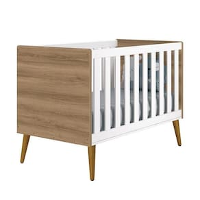 Berço Mini Cama Theo Retrô Branco Fosco/mezzo Com Pés Amadeirado - Reller Móveis Branco Fosco/mezzo Berço Mini Cama Theo Retrô com Pés Amadeirado - Reller Móveis O Berço Theo Retrô é uma inspiração de épocas clássicas, uma releitura do estilo antigo nos tempos atuais, rejuvenescendo o ambiente com cores e formas. Seus pés pontiagudos realçam ainda mais essa proposta. O Berço Theo Retrô além de muito estiloso, transforma-se em mini cama com proteção, auxiliando na transição do berço para caminha, desfrutando do móvel por mais tempo. Deixe o quartinho do seu filho moderno e encantador com o Berço Theo Retrô. ESPECIFICAÇÕES: - Estrutura em MDF - Pintura UV atóxica - Acabamento fosco - Grade Fixa - Espaçamento da grade: 5,9 cm - Estrado em MDF - Cantos arredondados - 3 Regulagens de altura do estrado - Acompanha suporte para mosquiteiro - Transforma-se em mini cama - Padrão Americano - Pés pontiagudos em madeira maciça - Certificado pelo INMETRO 002666/2018 - Colchão Recomendado: 130 x 70 cm - Não acompanha colchão
