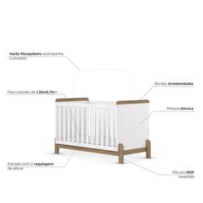 - Pintura Atóxica. Acabamento: Pintura UV Acompanha Cama Auxiliar: Não Acompanha Móbile: Não Acompanha Suporte para Mosquiteiro: Sim - Sem Véu Altura: 89 cm Altura do Estrado até o Chão: 20 cm Altura dos Pés: 7 cm Ambiente Principal: Quarto de Bebê Berço 3 em 1: Não Certificado: 002 990/2024 codigo_ean: 7900288272034 Complexidade da Montagem: Média: pode ser montado por mais de uma pessoa e/ou necessite de maior conhecimento para montagem Cor: Branco/Jequitibá Cor do Produto: Branco/Jequitibá Escala de Brilho: Fosco Estilo: Moderno Estrado com Regulagem de Altura: Sim Estrado Regulável em Quantas Posições: 02 Itens Inclusos: 1 Berço, Kit Ferragens e Manual de Montagem Largura: 145 cm Linha ou Coleção: Yuri Manual de Montagem e Instalação: https://product-hub-prd.madeiramadeira.com.br/318464017/documents/730b7031-f9a4-430f-887b-df83b774c5073246710326617591628638391.pdf Marca: Espresso Móveis Material da Grade: MDF Material do Estrado: MDF/MDP Material dos Pés: MDF Material Principal: MDF/MDP Multifunção Flex: Não Necessita Montagem: Sim Opções de Altura do Estrado: 2 Origem do Produto: Nacional Permite a Utilização de Cama Auxiliar: Não Peso: 32 kg Pintura Atóxica: Sim Portátil: Não Possui Gavetas: Não Possui Pés: 04 Possui Portas: Não Possui Prateleiras: Não Profundidade: 76 cm Recomendações de Uso, Manutenção e Limpeza: Para limpeza de seu móvel, use uma flanela limpa e seca. Não utilize produtos químicos que possam danificar o produto. Sapatas Niveladoras: Não Sistema Anti-Refluxo: Não Sistema de Montagem: Parafusos e Cavilhas Suporta Até (kg): 25 kg Tamanho do Colchão Indicado (L x C): 130 x 70cm Tipo de Berço: Berço Mini Cama Tipo de Estrado: Removível Tipo de Grade: Fixa