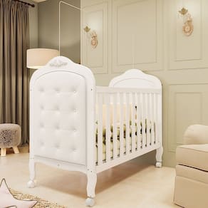 Transforme o quarto do seu pequeno com o Berço Maya, a escolha perfeita para pais que buscam versatilidade e tranquilidade. Fabricado em MDF de reflorestamento e com pintura UV atóxica, o Berço Maya oferece máxima segurança e durabilidade. Possui certificação INMETRO, estrado com 3 regulagens de altura e bordas arredondadas. Este berço multifuncional 3 em 1 se adapta ao crescimento do seu filho, virando minicama ou minisofá. Com 4 rodízios (2 com travas), a mobilidade é garantida. Compatível com colchão padrão americano (70x130cm). O design provençal com capitonê em sintético branco adiciona elegância. Invista no bem-estar e segurança do seu bebê!