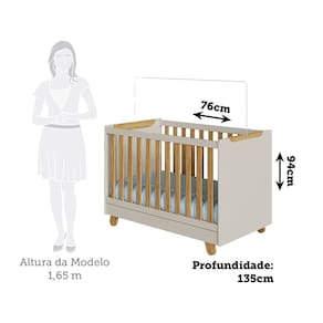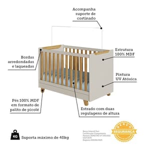 O Berço é fabricado 100% em MDF e possui pintura atóxica. Seu estrado possui altura regulável, e as grades e molduras possuem bordas arredondadas e laqueadas, proporcionando uma sensação agradável ao toque. Acompanha suporte de cortinado.