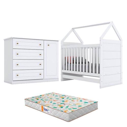 Berço Montessoriano Americano e Cômoda Infantil Mississipi Branco com Colchão Gazin – Henn