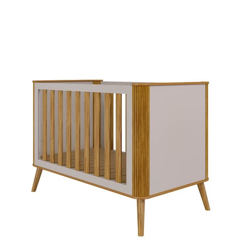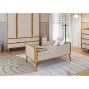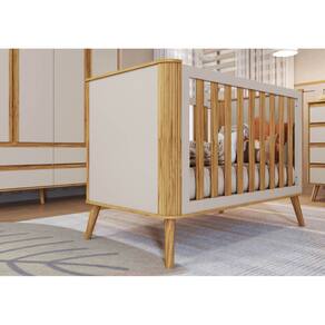 Fabricado em MDF , pés palito em madeira, cantos curvados, bordas laqueadas, pintura atóxica , base do colchão com 3 regulagens de altura;