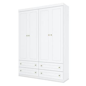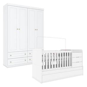 Berço Multifuncional Cleo e Guarda Roupa Infantil 4 Portas Americano Branco Fosco - Carolina