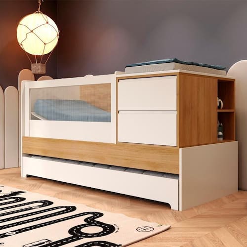Posteriormente, os papais podem transformar o berço em uma cama de solteiro com cama auxiliar, e com as peças que restarem é possível montar uma escrivaninha, aumentando assim sua vida útil.