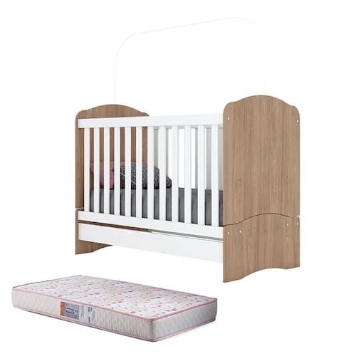 Berço Nacional Bala de Menta Rústico Branco com Colchão Gazin – Henn