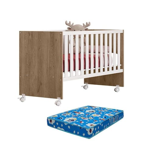Berço Nacional Doce Sonho 3540 Carvalho Rústico TOQ Branco com Colchão Tend Tudo – Qmovi