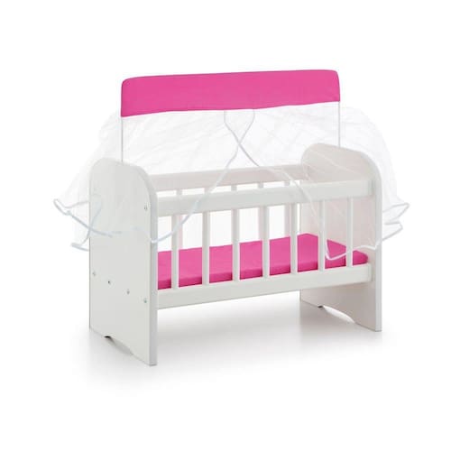 Função do produto : Berço de Boneca Material : MDF Composição: Berço em MDF e Madeira de Pinus Medidas do produto: 60 cm cpto x 42 cm altura x 32 cm largura Peças que compõem o produto: 01 Berço de Boneca com colchão e mosquiteiro Garantia : 03 meses de Fábrica