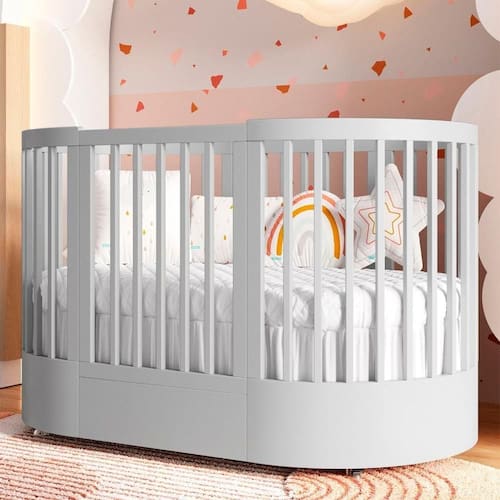 Com três opções de uso, o design contemporâneo do Berço Redondo Mel Wave traz uma proposta que renova o visual do quarto de bebê e que apresenta uma tendência contemporânea para compor o ambiente. Com rodízios de silicone gel que facilitam a movimentação pelo espaço, apresentamos uma composição que foge do óbvio e que vai acompanhar o crescimento da criança, já que o berço se transforma em berço, mini berço e mini cama. Ideal para as famílias que buscam investir em móveis com funcionalidade e design com um toque moderno para o quarto de bebê. Confira todos os detalhes: