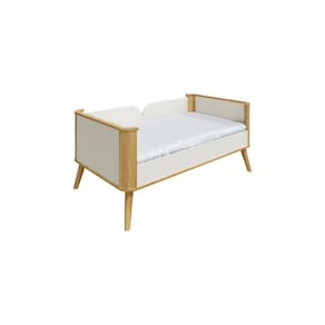 Fabricado em MDF , pés palito em madeira, cantos curvados, bordas laqueadas, pintura atóxica , base do colchão com 3 regulagens de altura;