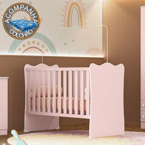 Berço Simples Doce Sonho 1 Qmovi Rosa Acetinado + Colchão Ortobom - Rosa Claro