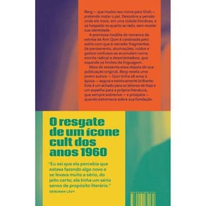 O resgate de um ícone cult dos anos 1960. Berg — que mudou seu nome para Greb — pretende matar o pai. Descobre a pensão onde ele mora, em uma cidade litorânea, e se hospeda no quarto ao lado, sem revelar sua identidade. A premissa insólita do romance de estreia de Ann Quin é catalisada pelo estilo com que é narrada: fragmentos de pensamento, alucinações, ruídos e gestos confusos se acumulam numa escrita radical e desorientadora, que expande os limites da linguagem. Mais de sessenta anos depois de sua publicação autêntico, Berg revela uma jovem autora — Quin tinha 28 anos à época — segura e esteticamente brilhante. Este é um achado para os leitores de hoje e um espelho para a própria literatura, que sempre sobrevive — e prospera — quando estremece sobre sua fundação.