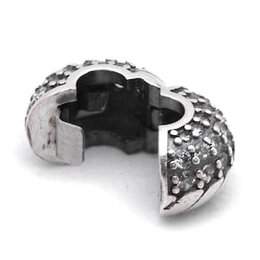 Uma trava cheia de brilho e elegância O Berloque Clipe Cobra é um modelo separador em estilo clipe no formato do corpo de uma cobra. Os berloques estilo clipe são ótimas opções para você travar seus berloques, evitando que eles caiam quando você abrir sua pulseira ou ate mesmo para que eles não se mexam na sua pulseira. Este clipe é adornado por dois tipos de detalhes. Uma metade do berloque é toda craveja por pedrinhas de Zircônia branca, representando todo o brilho da pele da cobra. Enquanto que a outra metade é toda trabalhada em baixo relevo com detalhes oxidados, representando as escamas da cobra. Uma peça cheia de charme, elegância e beleza A cobra, por sua vez, possui diversos significados e simbologias associados a ela, um símbolo de proteção Budista, além de ser também um símbolo na medicina relacionado a cura. Este clipe, além de dar muito brilho para a sua pulseira, ainda garante a segurança dos seus berloques Por isso, essa peça que não pode faltar na sua coleção Berloques separadores podem ser para separar dois pingentes.. O acabamento e polimento são feitos de forma individual, manual e cuidadosamente na produção da peça. Esse berloque é compatível com todos as pulseiras do mercado. No entanto, caso ainda tenha dúvidas, basta medir a espessura da sua pulseira. O vão do passador desta peça tem 4,5mm de diâmetro. Material: prata 925 e Zircônia. Cor: prata. Medidas aproximadas: 11mm de altura x 07mm de largura. Vão do passador com 4,5mm de diâmetro. Para que o clipe não se mexa, verifique a espessura da sua pulseira. Essa peça tem o vão do passador com 4,5mm de diâmetro Marca: Não Informado