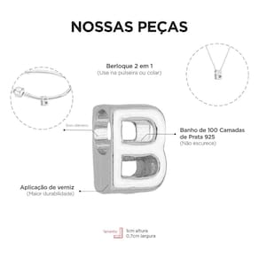 MODELO: Berloque Letra B banhado com 100 milésimos de prata 925.