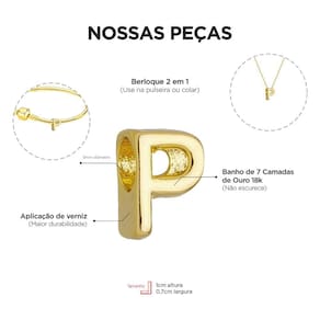 MODELO: Berloque de Letra P banhado com 7 milésimos de ouro 18k .