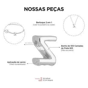 MODELO: Berloque de Letra Z banhado com 100 milésimos de prata 925.