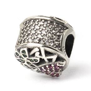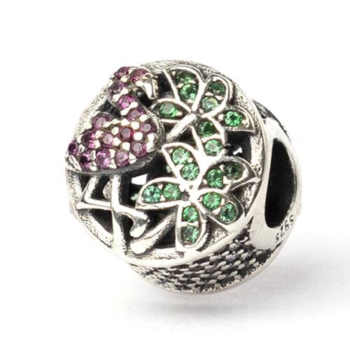 O Berloque Separador Flamingo é composto em Prata 925 e dessa forma a peça não descasca, ao contrário dos materiais folheados e banhados. A beleza e o charme do flamingo chegou para transformar a sua coleção. As cores são vibrantes e tem brilhos por toda a volta. Os desenhos vazados dão mais leveza à peça. Ambos os lados são iguais. O berloque é composto por um flamingo todo cravejado por zircônias roxas e uma de suas pernas se encontra dobrada, na clássica posição da ave. A sua volta, coqueiros cravejador por zircônias verdes preenchem o espaço, transformando o berloque em uma linda cena tropical.