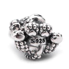A delicadeza em forma de berloque O Berloque Pingente Cachorrinho Poodle é adorável. O seu rostinho amigável, é destacado pelos seus olhos e nariz pintados em esmalte preto. As suas patinhas são super fofas, que dão vontade de morder. Sem esquecer claro do seu rabinho que não ficou de fora do design. Ele está sentadinho, com uma coleira com uma plaquinha de identificação em forma de coração no pescoço. O seu passador é em prata lisa, deixando todo o destaque para a peça. Por ele ser estilo pingente, é ideal para ficar entre dois separadores. Imagina ele combinado com outros berloques com o tema pet O Berloque Pingente Cachorrinho Poodle é fabricado em Prata 925, por isso a peça não descasca. O acabamento e polimento são feitos manual e individualmente, revelando todo o cuidado que temos com cada detalhe. Assim, não se engane com materiais folheados e banhados. Esse berloque é compatível com todos as pulseiras do mercado. No entanto, caso ainda tenha dúvidas, basta medir a espessura da sua pulseira. O passador desta peça tem 4,5mm de diâmetro. Material: Prata 925. Cor: Prata. Medidas aproximadas: 20mm de altura x 10mm de largura. Passador com 4,5mm de diâmetro. Compatível com todas as marcas tradicionais de pulseiras de berloques. Marca: Mundo Briller Ean: 7805876072181