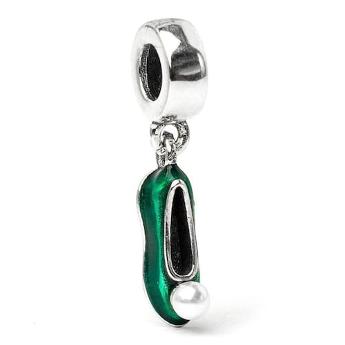 Esse sapatinho da Sininho chegou para encantar a sua coleção. O esmalte verde parece mudar de cor à medida que se move na luz, é muito bonito. Esse tom fica lindo com muranos. Essa combinação fica perfeita, dando até para imagina-la flutuando com pó magico. Berloque estilo pendente em formato de sapatinho da personagem Sininho do desenho Peter pan é o berloque que faltava para sua coleção, muito delicado fabricado em Prata 925 com detalhes esmaltados. Não se engane com materiais folheados e banhados. Acabamento e polimento manuais. Material: Prata 925 e esmalte. Cor: Prata e verde. Medidas aproximadas: 24mm de altura x 5mm de largura. Compatível com todas as pulseiras. Marca: Mundo Briller Ean: 7899057813731