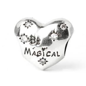 Coração com escrito Be Magical fabricado em prata 925 com detalhes em Zircônia. Não se engane com produtos folheados. Material: Prata 925 e Zircônia. Cor: Prata Medidas aproximadas: 11mm de altura x 11mm de largura. Compatível com todas as pulseiras. Marca: Mundo Briller Ean: 7899057813410
