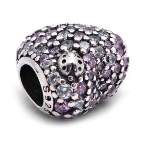 Um jardim encantado em formato de coração com uma delicada joaninha. A combinação entre o cristal e o roxo dá leveza a este berloque encantador. Berloque estilo separador fabricado em Prata 925 com Zircônia. Não se engane com materiais folheados e banhados. Acabamento e polimento manuais. Material: Prata 925 e Zircônia. Cor: Prata e roxo. Medidas aproximadas: 12mm x 11mm de largura. Compatível com todas as pulseiras. Marca: Mundo Briller Ean: 7899057812925