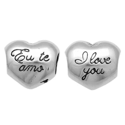 Berloque fabricado em forma de coração com escrito eu te amo e I Love You. Não se engane com produtos folheados. Acabamento e polimento manuais. Material: Prata 925. Cor: Prata. Medidas aproximadas: 10mm de altura x 10mm de largura. Compatível com todas as pulseiras. Marca: Mundo Briller Ean: 7899057813908
