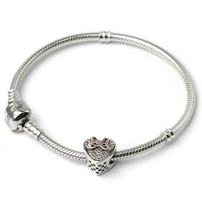 Berloque estilo separador em formato de coração fabricado em Prata 925 e cravejado em Zircônias refernciando a ratinha mais famosa do mundo. . Não se engane com materiais folheados e banhados. Acabamento e polimento manuais.