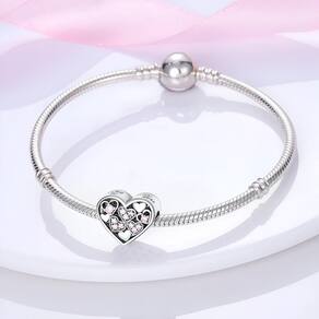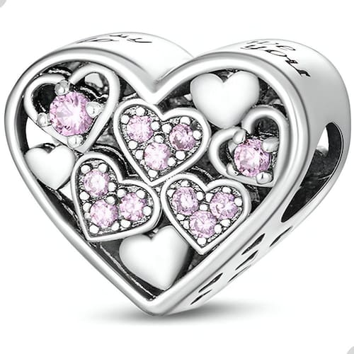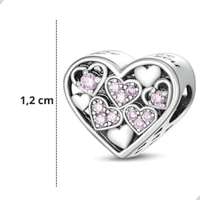 "Um toque de amor em cada detalhe: o coração de zircônia rosa brilha intensamente neste berloque prata 925, simbolizando sentimentos doces e apaixonados."