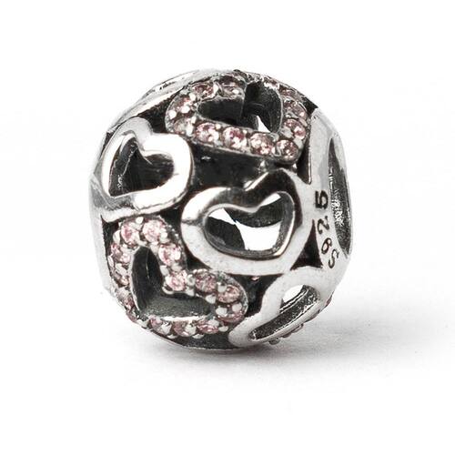 Complete a sua coleção com amor e delicadeza com este berloque estilo separador com corações vazado e detalhes em brilho rosa.Os tons neutros permitem que ele fique lindo com qualquer coleção, deixando tudo mais romântico e delicado. Não se engane com materiais folheados e banhados. Acabamento e polimento manuais. Material: Prata 925 e Zircônia. Cor: Prata e rosa. Medidas aproximadas: 8mm de diâmetro Compatível com todas as pulseiras. Marca: Mundo Briller Ean: 7899057813748