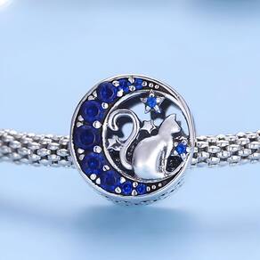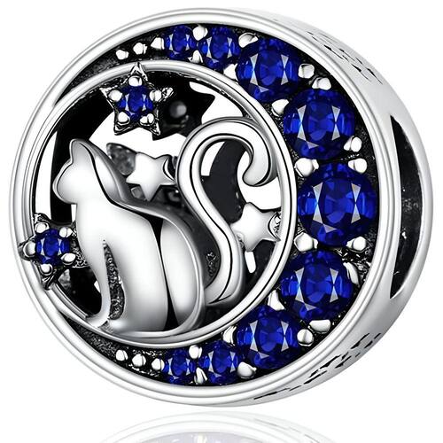 "Guardião noturno: um gato prateado desliza entre as estrelas, separando cada momento com elegância sob o brilho do luar."
