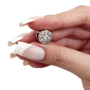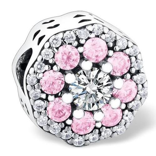 Zircônias rosas e claras preenchem ambos os lados deste berloque estilo separador que é um arraso. A lateral com corações vazados passa um ar delicado a esse designer. Fabricado em Prata 925 e Zircônias. Não se engane com materiais folheados e banhados. Acabamento e polimento manuais. Material: Prata 925 e Zircônia. Cor: Prata e rosa. Medida aproximadas: 12mm de diâmetro. Compatível com todas as pulseiras. Marca: Mundo Briller Ean: 7899057812888