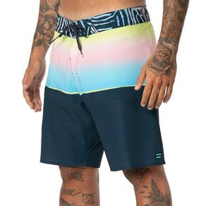 Bermuda Billabong feita em tecido com tecnologia 4 Way Stretch reciclado, derivado de garrafas pet, tecido projetado para o melhor desempenho, estabilidade, flexibilidade e conforto, revestimento repelente à água, tecido de secagem rápida, estampa exclusiva da coleção, bolso lateral com fechamento em zíper, patch bordado na perna e no bolso.
