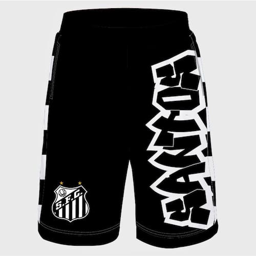 A Bermuda do Santos com estampa personalizada é um produto oficial licenciado, perfeito para os torcedores do time que buscam mostrar sua paixão pelo clube de forma estilosa e autêntica.