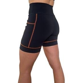 Bermuda de compressão preta com 2 bolsos laterais e 2 bolsinhos internos para pequenos objetos. Desenvolvida para corrida de rua, maratona, trail running, corrida de montanha.