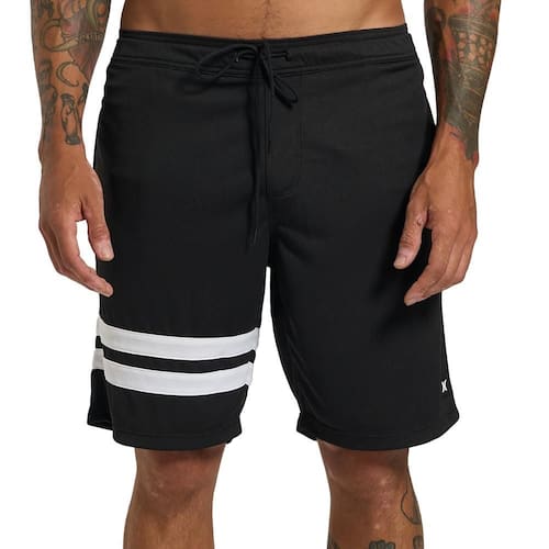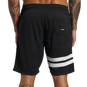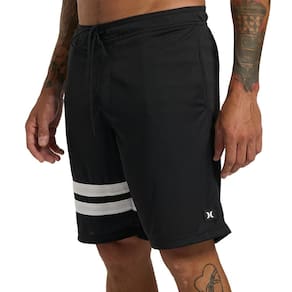 Bermuda Hurley com bolsos nas laterais, cós com cordão para melhor ajuste, faixas Block Party, patch ICON de borracha na barra e bolso traseiro com etiqueta ONE&ONLY.
