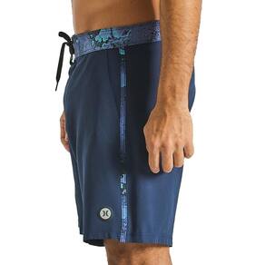 Bermuda Hurley com bolsos nas laterais, cós e tape laterais sublimados, transfer refletivo LAYERS na barra e bolso traseiro com etiqueta ONE&ONLY.