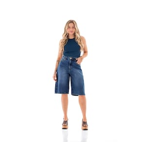 A Bermuda Jorts Jeans Feminina é uma peça casual e descontraída, perfeita para os dias quentes. Inspirada no estilo dos anos 90, combina o charme dos jeans shorts (jorts) com o conforto de uma bermuda mais longa. Sua modelagem apresenta cintura alta, pernas soltas e um corte moderno, garantindo um visual despojado e confortável. Com uma lavagem versátil, é ideal para compor looks estilosos e cheios de personalidade, garantindo um visual retrô autêntico, sem abrir mão da modernidade.