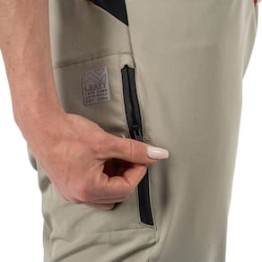 O fechamento é outro diferencial: a bermuda possui ajuste na cintura com tiras de fecho aderente, além do sistema de botão e zíper frontal, garantindo um encaixe firme e seguro. Assim, ela se mantém no lugar mesmo durante trechos técnicos, subidas intensas ou movimentos mais agressivos na bike.