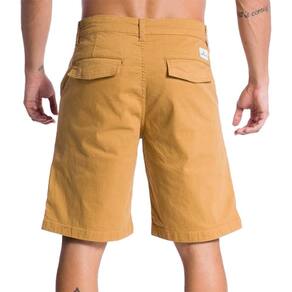 Walkshort cargo, tecido de sarja com elastano, cós com forro no interno e silk centralizado, etiquetas no bolso traseiro e no bolso faca frontal, fechamento da vista em botão de massa consturado tinturado e zíper e modelagem straight.