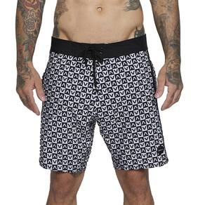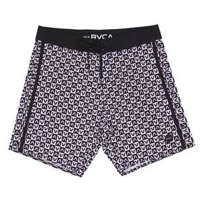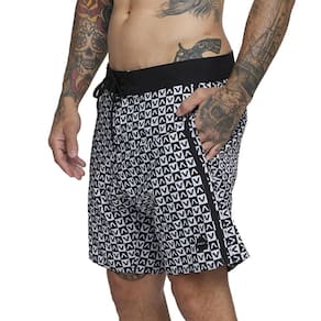 Bermuda Rvca com alta elasticidade, comprimento de 17 polegadas, fechamento em cordão de ajuste externo, estampa sublimada full print, bolsos laterais embutidos com vive aplicado, bolso traseiro com lapela fechamento em fitas duplas aderentes e patch aplicado na lateral da perna.