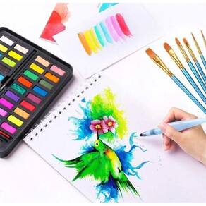 Bestseller Aquarelas Pincel Recarregável Case 36 Cores36 Cores VibrantesAlto PigmentadoCarregamento AvançadoNão Tóxico 36 Cores Vibrantes36 cores de tinta de 36 cores, inclui as cores mais comumente s. Se você está pintando dentro de casa ou fora desenhando no campo, este versátil conjunto de aquarela sempre seria uma bagagem de mão. Caixa de metal delicada Envolta em uma caixa de metal, de 9" de comprimento e 7" de largura, protege bem as tintas, canetas e pincéis no interior. Como uma caixa de metal muito agradável, você sempre pode substituir essas ferramentas de pintura por aquelas com as quais você gosta de viajar. Papéis de Aquarela de Algodão Puro 8 pedaços de papéis de aquarela de algodão puro no tamanho de 21 cm x 13 cm (L x de largura), vêm com absorção moderada de água e uma superfície texturizada. Não tóxicos Esses pastéis de aquarela não tóxicos vêm em um espectro de cores brilhantes e vibrantes. Altamente pigmentadoDa mais alta qualidade, com uma alta concentração de pigmentos para durabilidade superior e permanência finamente moída. Além disso, o pigmento é resistente ao desbotamento e descoloração da luz solar direta. 36 Tintas Aquarela 1 Caneta Escova de Água 1 Escova de Cabelo de Nylon 2 Esponja 1 Lápis de Carvão 1 Tinta Aquarela (Tubo de 6ml, Branco Chinês)