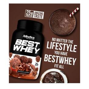 BEST WHEY 450g Eleita por dois anos seguidos a melhor proteína do Brasil, BEST WHEY possui fórmula exclusiva, saudável e deliciosa, ideal para seu consumo diário do melhor WHEY PROTEIN. A proteína é uma fonte de energia, mas o seu principal papel no corpo é o crescimento e reparo. Isso quer dizer que ela ajuda na formação dos músculos, cabelos, unhas, pele e órgãos. Além disso, ajuda a manter o equilíbrio para evitar indisposição, baixa imunidade ou perda de massa muscular. É considerada um macronutriente, como o carboidrato e os lipídios, que seu corpo precisa para ser mais saudável.Best Whey é um delicioso suplemento alimentar feito com blend de proteínas WPC, WPI e WPH. Rico em proteínas, baixo em carboidratos e gorduras. Se você busca uma boa opção para adequar o seu aporte proteico diário com um novo sabor a cada dia, o Best Whey é a escolha ideal, sendo incrivelmente saboroso, com perfeita cremosidade e diversas opções de sabores.