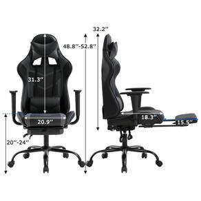 ASSENTO CONFORTÁVEL E MACIO COM APOIO PARA OS PÉS Apresentamos esta nova cadeira gaming com encosto alto com uma aparência única e uma cadeira de corrida com acolchoamento espesso para máximo conforto. A cadeira de escritório em couro PU sintético macio é um complemento perfeito para você no escritório, na sala de estudos e na sala de reuniões. Cadeira de corrida para jogos cadeira para escritório cadeira ajustável cadeira para mesa cadeira para computador. INSTALAÇÃO SUPER FÁCIL Nossa cadeira de corrida vem com todo o hardware e ferramentas necessárias. Siga as instruções da cadeira de jogo, você achará fácil configurar e o tempo estimado de montagem da cadeira de escritório em cerca de 10 15 minutos. Cadeira de mesa ajustável para escritório de jogos de corrida. CADEIRA DE ESCRITÓRIO MULTIUSOS Cadeira de corrida ergonômica revestida por couro PU de alta qualidade respirável com apoio lombar ajustável livremente e travesseiro de encosto de cabeça que protege a coluna e o pescoço. Fácil ajuste de inclinação e travamento com regulador de inclinação angular, alivia a sensação de cansaço e a pressão durante longos jogos ou trabalho. Cadeira de escritório cadeira de jogos cadeira de computador cadeira ergonômica. GIRATÓRIOS E RODÍZIOS 360 GRAUS As cadeiras são projetadas com construção ergonômica voltada para o homem e duram muito, e as cadeiras para jogos têm uma base de metal resistente que passa pela BIFMA com rodízios giratórios de 360 graus e rodízios de nylon Marca: Não Informado