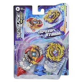 Contém 2 piões Beyblade Burst Speedstorm e instruções