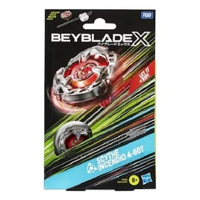 oda a emoção da nova geração de arenas, lançadores e piões Beyblade: Este kit Inicial Beyblade X inclui 1 pião SCYTHE INCENDIO 4-60T tipo ataque e giro à direita e 1 lançador (requer Arena Beystadium required, vendida separadamente).