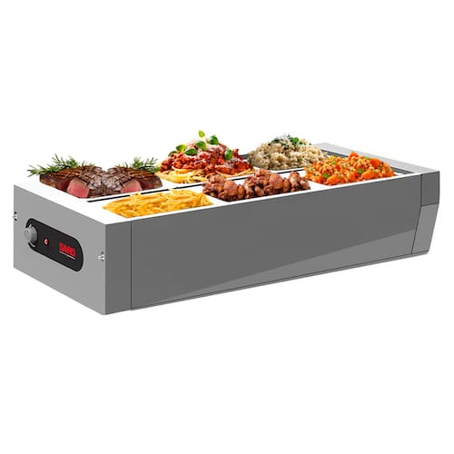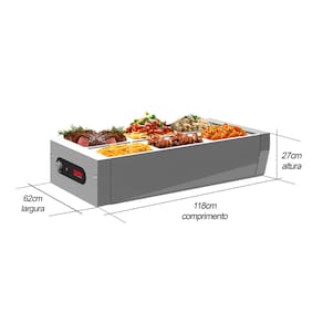 Com o Buffet Térmico Aquecido SARO será mais fácil servir diversos tipos de alimentos e mantê-los na temperatura certa enquanto expostos para agradar seus clientes. Este produto é indispensável para restaurantes, hotéis, lanchonetes, padarias, eventos, e similares que procuram por um produto econômico com excelente custo-benefício.