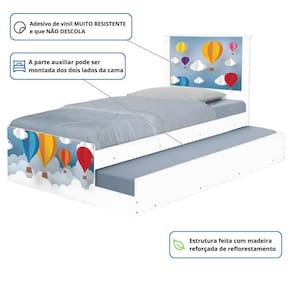 Bi Cama Juvenil Zap com Cabeceira Balões - Branco