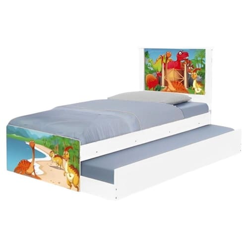 Bi Cama Juvenil Zap com Cabeceira Terra dos Dinossauros - Branco