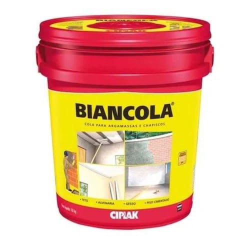 BIANCOLA ADESIVO P/ REBOCO E GESSO CIPLAK 18KG SIKAÉ um adesivo especial à base de resina de PVA que, adicionado à massa de cimento, promove sua melhor fixação em diversas superfícies, como concreto, alvenaria, EPS e drywall, deixando-a mais durável e fácil de trabalhar. Pode ser utilizado também em chapisco, onde evita respingos na aplicação. Ideal para áreas internas.Pode ser aplicado em: piso cimentado, azulejo, caiação, conserto de trincas em concreto e alvenaria, chapisco e argamassa em teto e parede (principalmente quando feito em EPS), reboco, ponte de aderência. Indicado para áreas internas.Modo de preparo da superfícieLimpe bem a superfície, deixando-a livre de pó, óleo, desmoldantes e sem partes soltas;Deixe a área da aplicação levemente áspera, lixando-a ou fazendo hidrojateamento, por exemplo;O resultado será melhor se a superfície porosa for ligeiramente umedecida antes da aplicação da massa.-Melhora a aderência da argamassa em superfície de concreto e alvenaria;-Facilita a aplicação e melhora a plasticidade da argamassa;-Aumenta a resistência das argamassas ao desgaste e ao impacto;-Diminui a retração e a permeabilidade da argamassa.-Função: Adesivo para argamassa-Composição e Aspecto: Resina de PVA e aditivos-Coloração: Branca-Massa Específica: 0,980 - 1,040g/cm³-Dosagem: 1 parte de BIANCOLA® para 2 partes de água.-Consumo Estimado: 0,1Kg a 0,5Kg por m², podendo variar conforme a espessura da argamassa ou chapisco e o volume de água utilizado.-Normas que atende: ABNT - NBR 13749Obs: Não interfere na qualidade da água potável.ATENÇÂO: Não utilize BIANCOLA® com outros aditivos ou em forma de pinturaCódico:81877Marca: SIKA