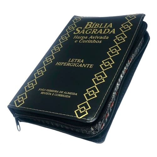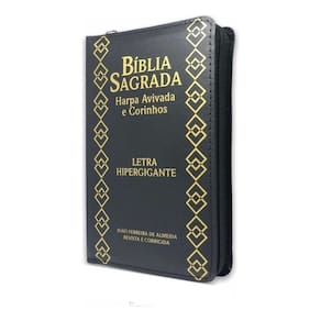 Bíblia Sagrada contendo o Antigo e o Novo Testamento, tradução de João Ferreira de Almeida - Edição Revista e Corrigida (a mais tradicional). Esta belíssima Bíblia possui as letras hipergigante para facilitar a leitura dos textos, ideal para pessoas com problemas visuais, contém Harpa Avivada hinos e corinhos.